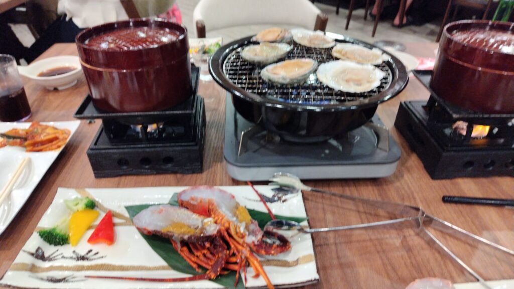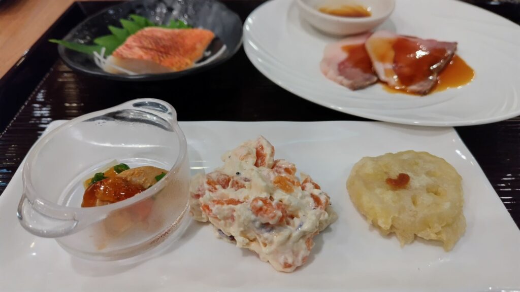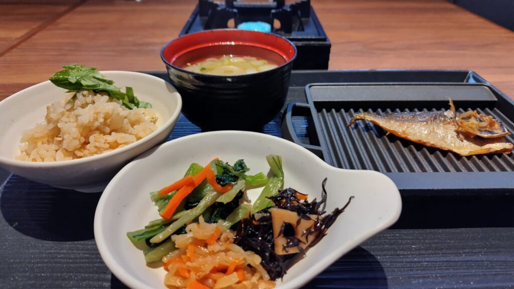海鮮丼が作れるコーナーや、干物を炙って食べられる和食がうれしい。金目鯛の炊き込みごはんが特に好みでした。
